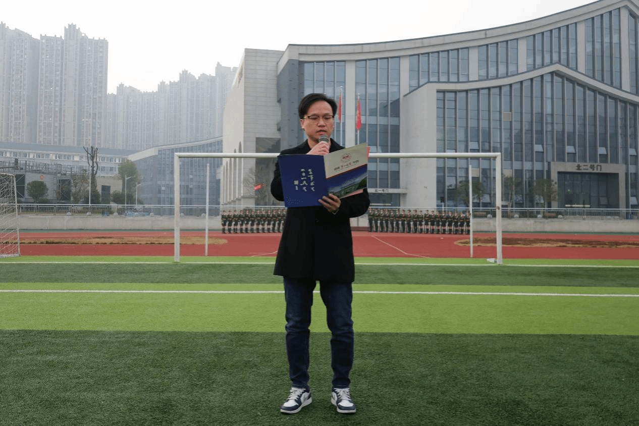 晨光初现,田径场上一片肃穆。国旗护卫队身着统一制服,迈着铿锵有力的步伐,昂首挺胸护卫国旗入场。伴随着雄壮的《义勇军进行曲》,鲜艳的五星红旗冉冉升起,全体师生肃立注目,齐声高唱国歌,表达对祖国的无限热爱与崇高敬意,现场气氛庄重而热烈。