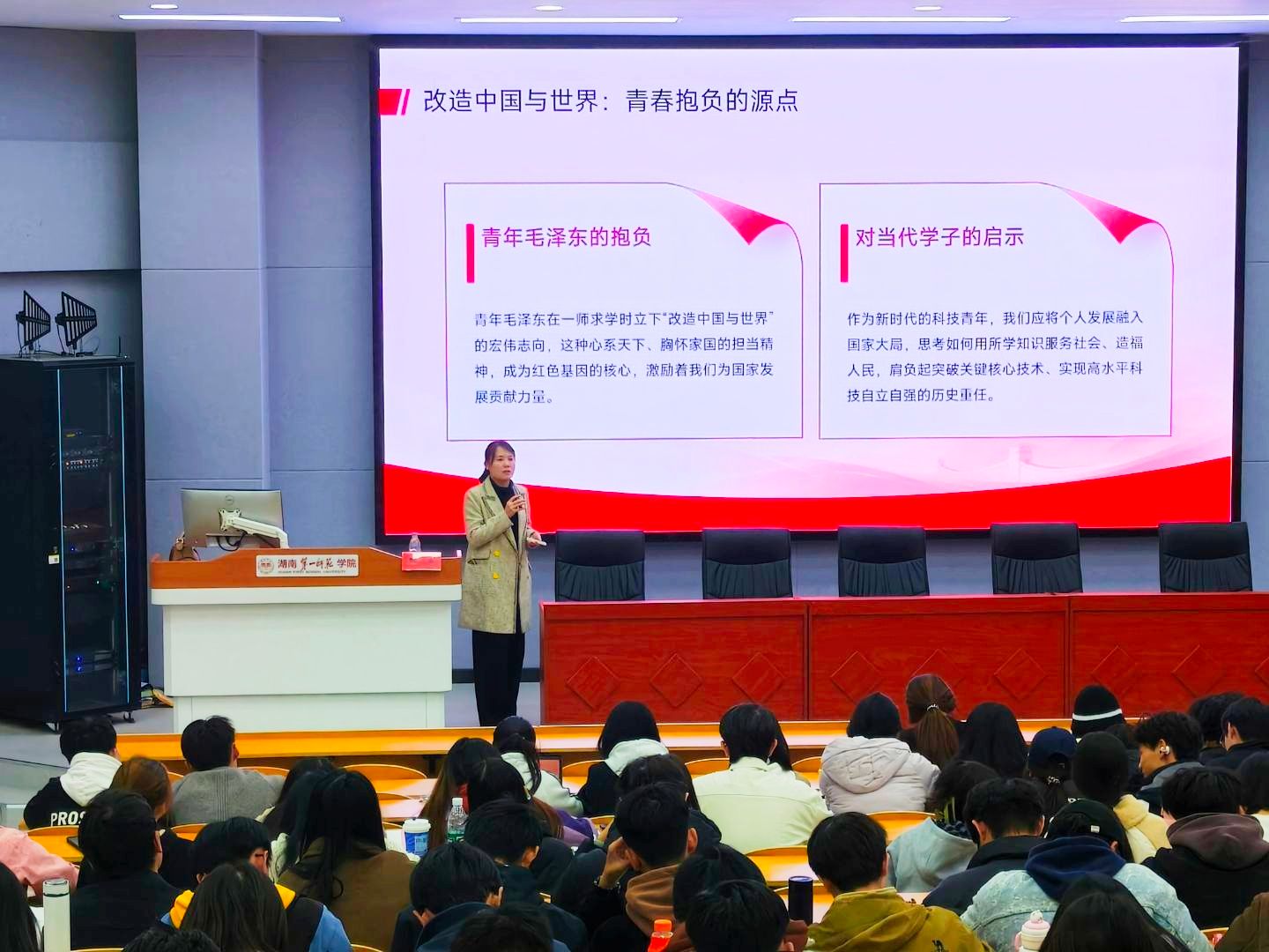 11月21日晚,必赢线路检测中心党委副书记陈奕在润寰楼南105教室为必赢线路检测中心、智能制造学院2025年秋季入党积极分子讲授了题为《红色基因耀青春,科技强国写华章》的专题党课。
